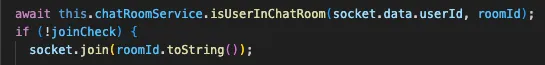 서버는 해당 유저가 채팅방에 속해 있는지 확인한 후, 룸에 연결시킵니다.