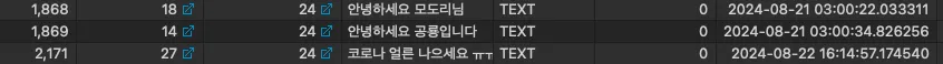채팅방 목록을 클릭하면 해당 채팅방에 접속할 수 있습니다.