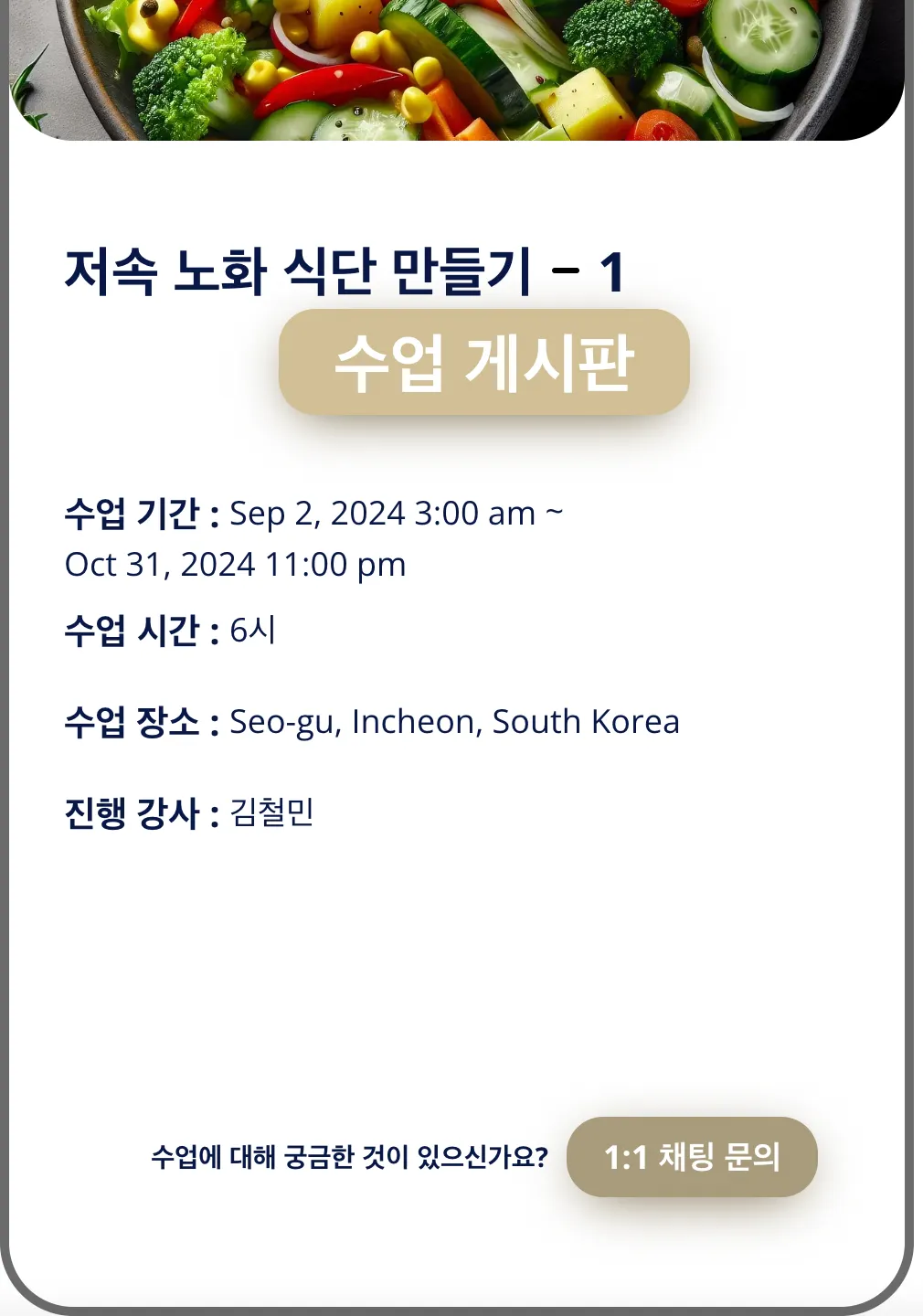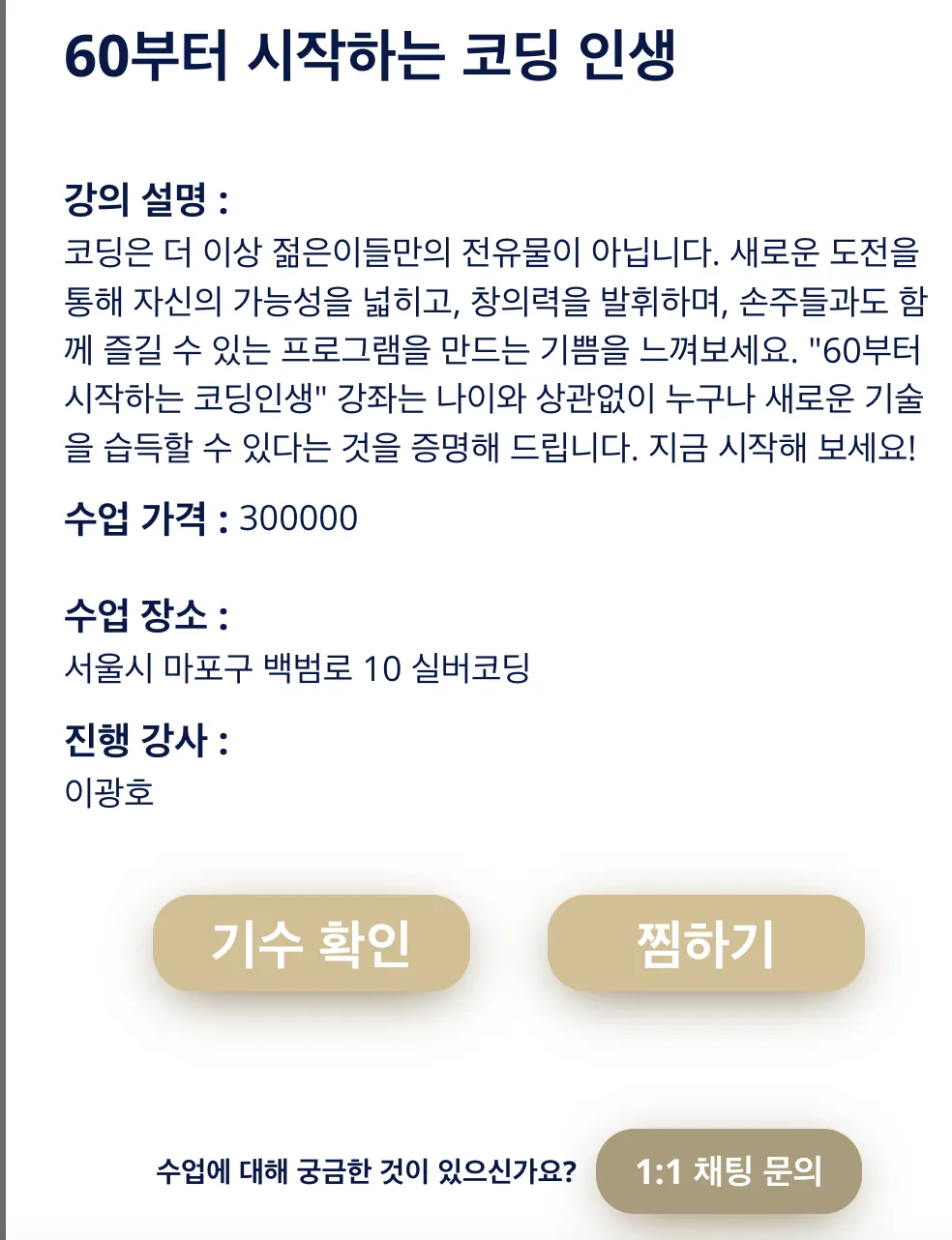 유저는 강의를 구매하기 전 ‘강의 상세 보기 페이지’ 그리고 강의 구매 후 ‘내강의 상세 보기 페이지’를 통해 1:1 문의채팅방에 입장할 수 있습니다.