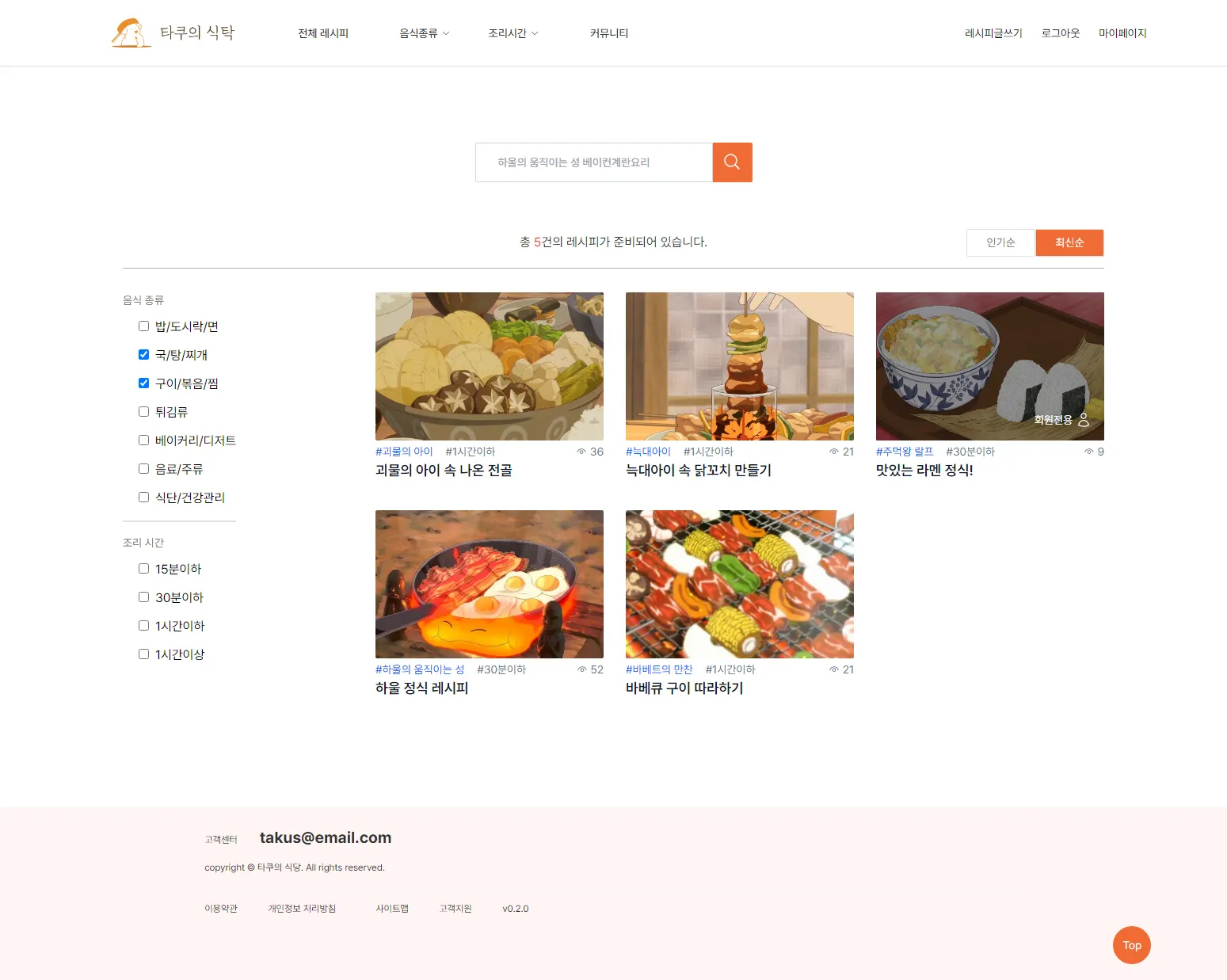 음식 종류/ 조리시간에 따라 게시글 조회 가능