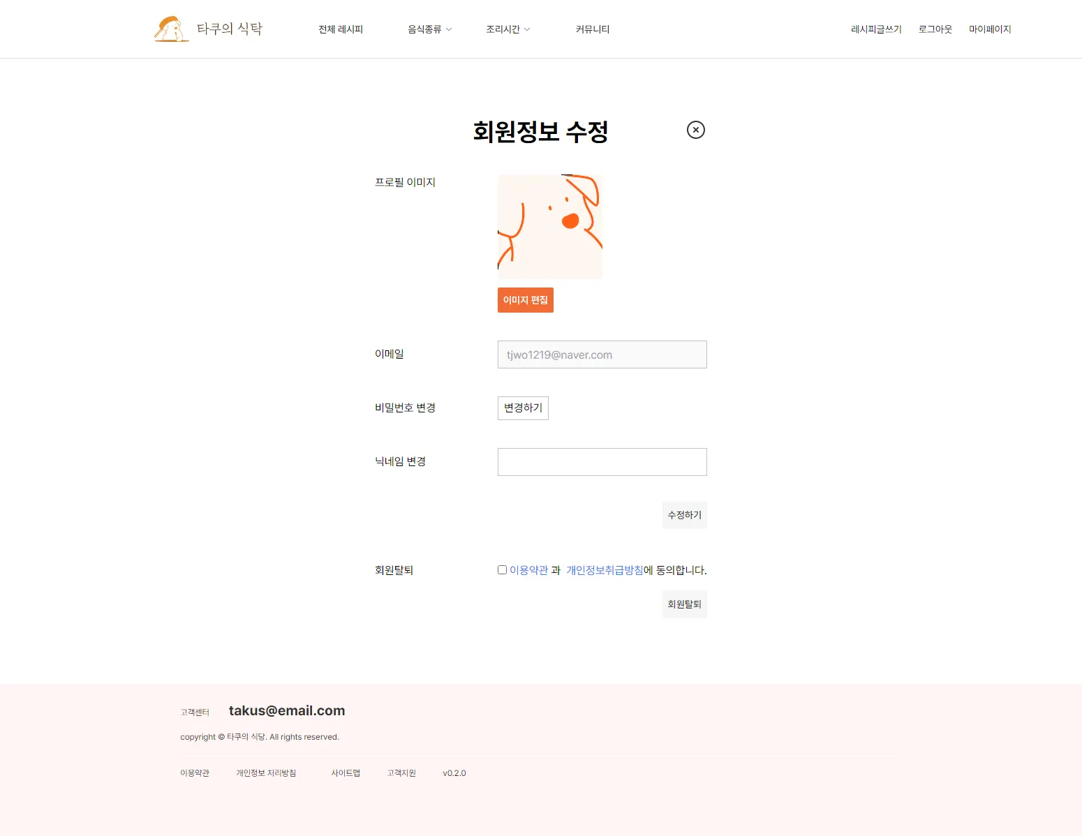 해당 유저의 비밀번호, 프로필 이미지, 닉네임 변경 가능