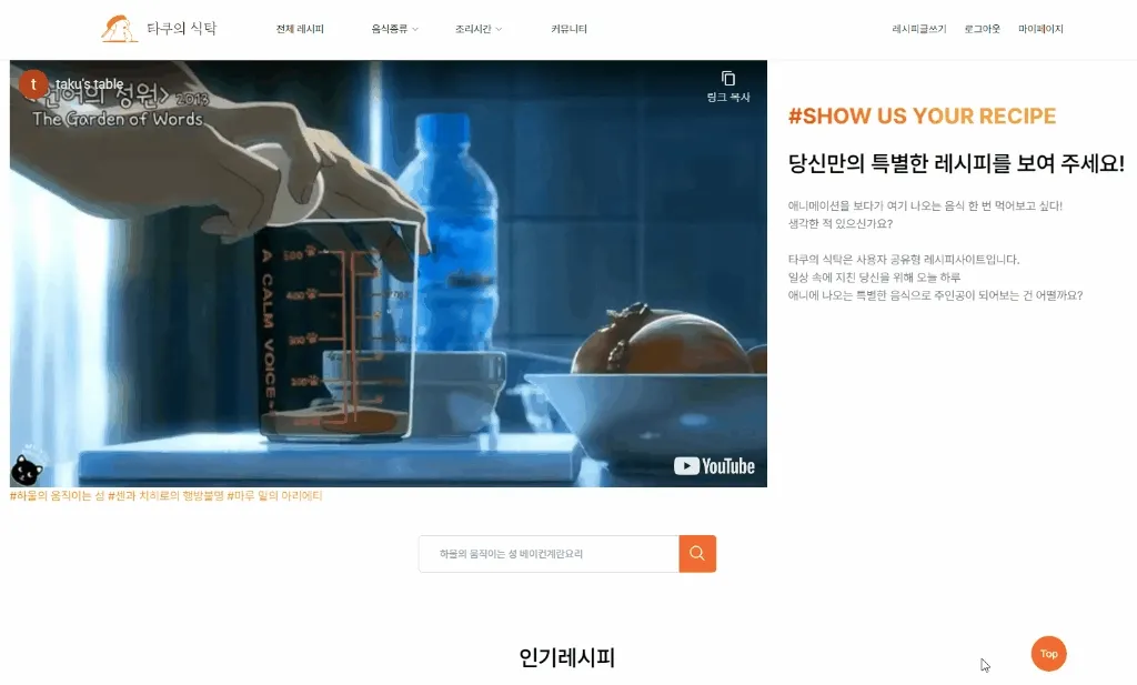 다양한 애니메이션 속 음식 레시피를 제공하는 “타쿠의 식탁”을 소개합니다.