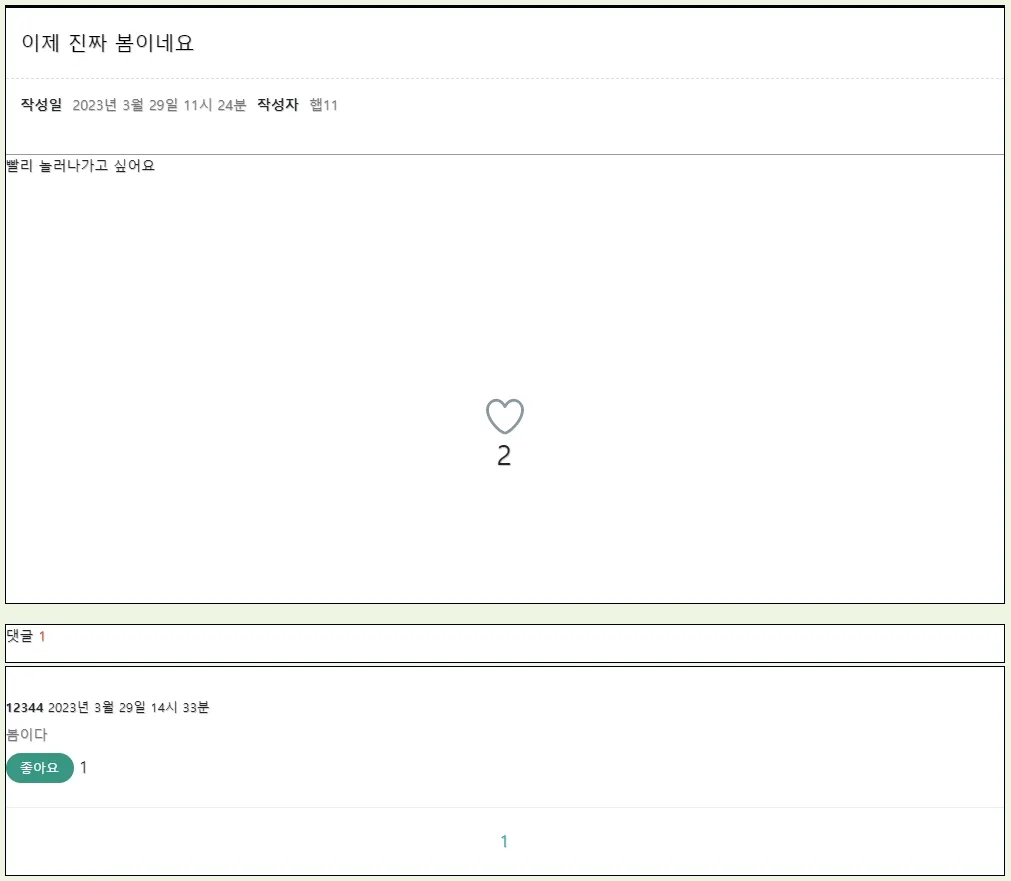 게시글 및 댓글 작성, 좋아요 그리고 페이지네이션 기능을 구현