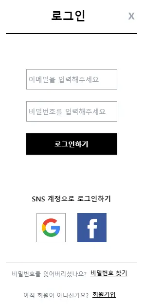 로그인/회원가입을 페이지로 따로 빼는 것이 더 편할 것 같다