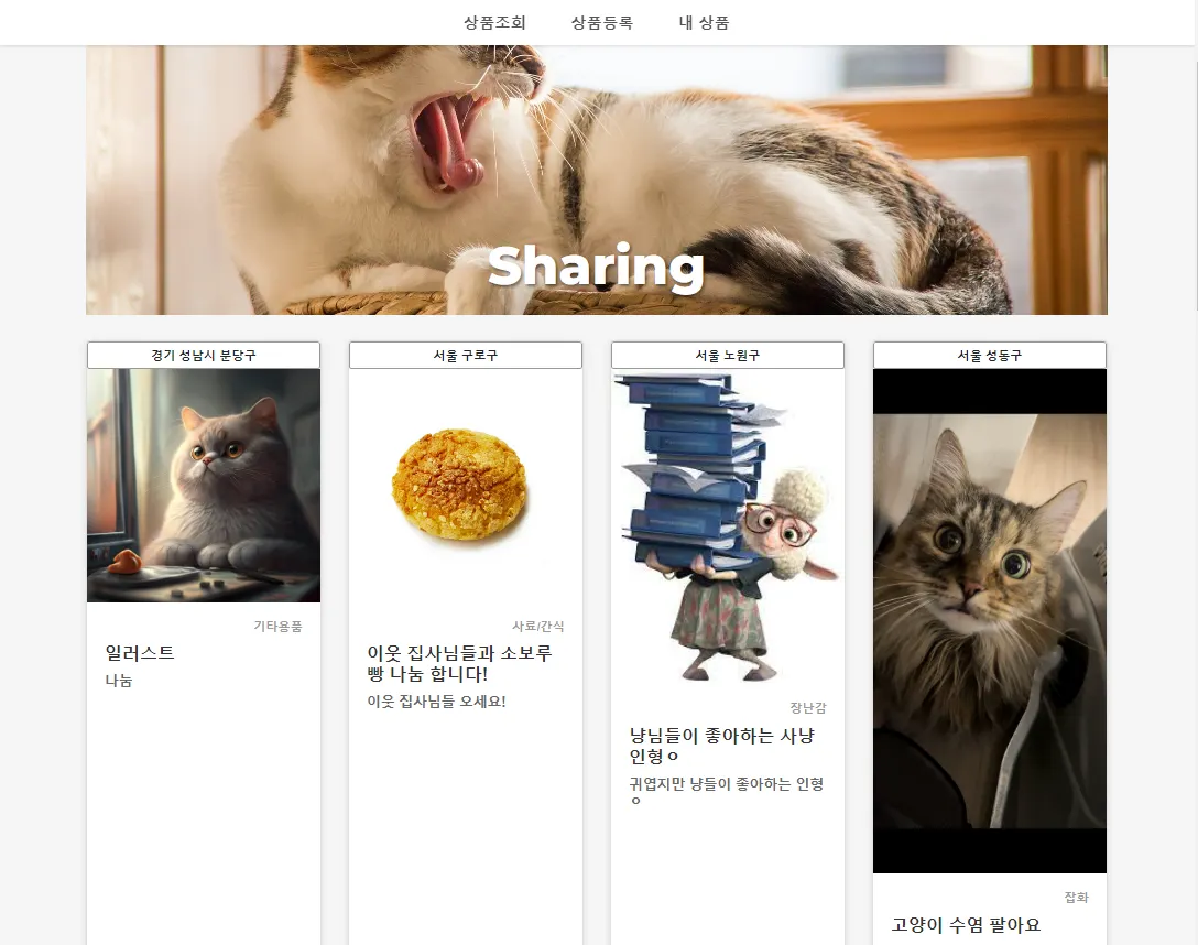 무료 나눔과 반려묘 정보들을 나눌 수 있는 고양이 집사들을 위한 커뮤니티 서비스입니다