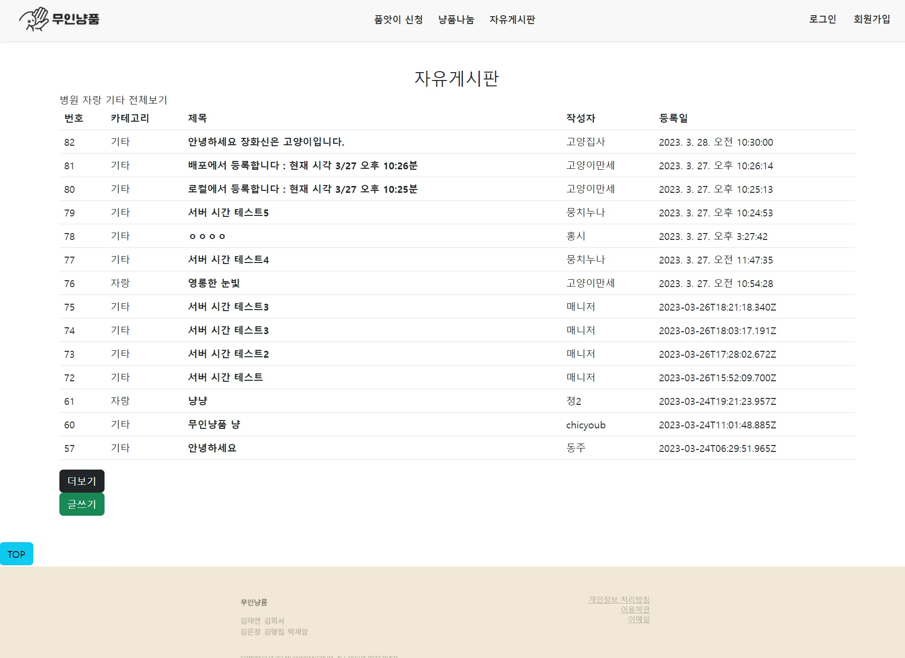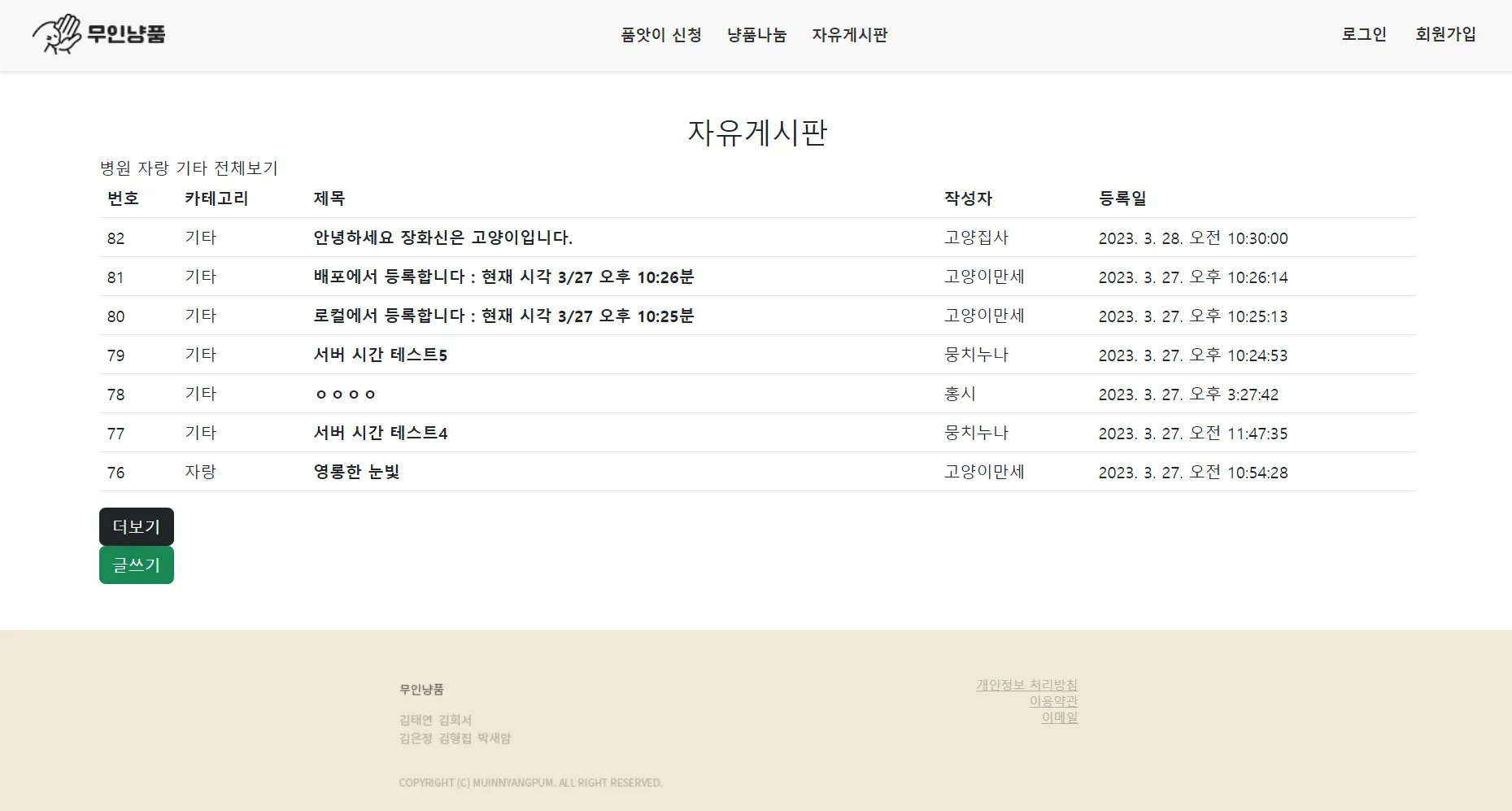 서비스 둘러보기: 무인냥품 홈페이지