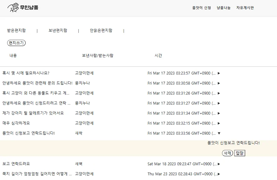 쪽지로 유저 간 대화