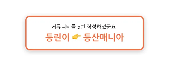 커뮤니티 게시글을 5번 작성 시 ‘등산매니아’로 자동 등업됩니다.